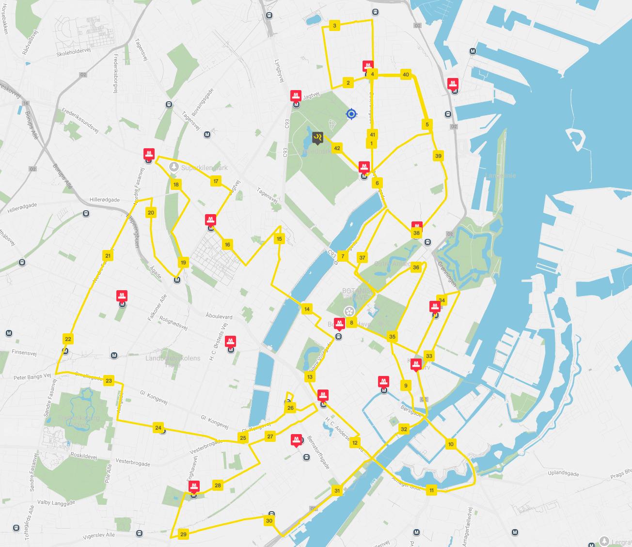 Die Strecke führt komplett durch die Stadt Kopenhagen und Frederiksberg. Auf dieser flachen Strecke können Sie eine schnelle Zeit laufen! Start und Ziel ist bei Islands Brygge. Eine großartige Gelegenheit, einen persönlichen Rekord zu laufen.