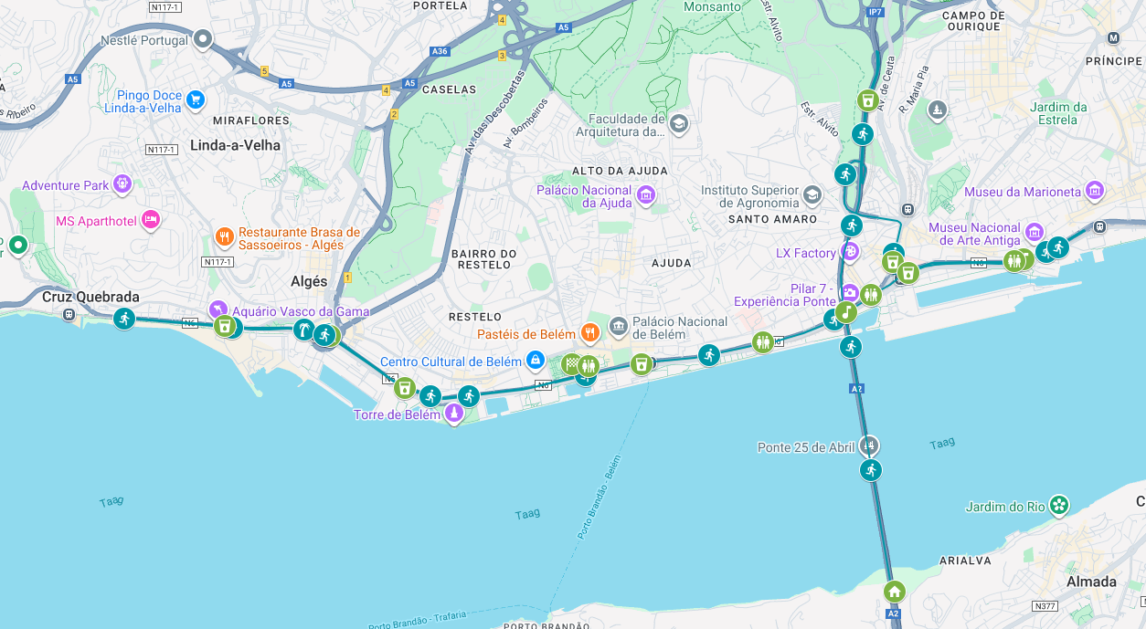 Schon der Start auf der imposanten Vasco-da-Gama-Brücke ist ein Erlebnis für sich. Von dieser ikonischen Brücke geht es hinunter in die Stadt, vorbei an breiten Boulevards, modernen Vierteln und historischen Highlights wie dem Padrão dos Descobrimentos und dem charakteristischen Belém. Die Strecke ist leicht hügelig, übersichtlich und ideal für Läuferinnen und Läufer, die gerne in einem straffen Tempo laufen oder eine persönliche Bestzeit anstreben.