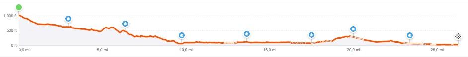 Die ersten 15 km sind im Allgemeinen bergab. Der Rest der Strecke ist ziemlich flach mit einem kleinen Anstieg auf diesem Viertel der Strecke.
